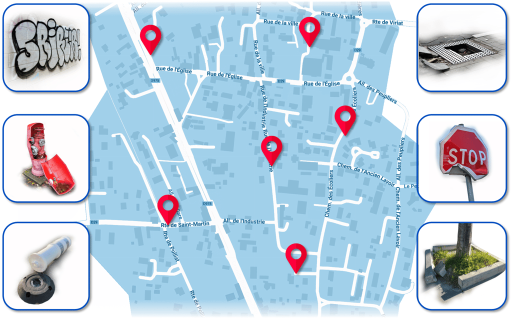 Geofix relève divers défauts constatés sur la voie publique et vous les transmet.