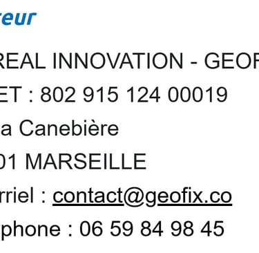 Le site www.geofix.co est la propriété de BOREAL INNOVATION - GEOFIX, qui est le responsable du traitement de vos données personnelles.