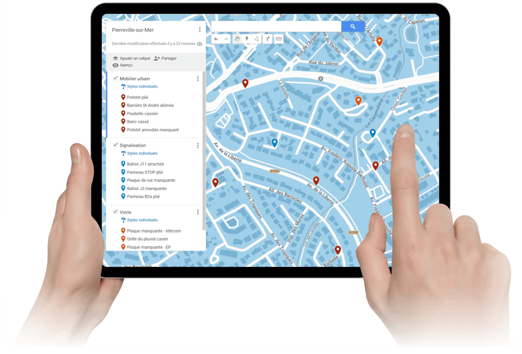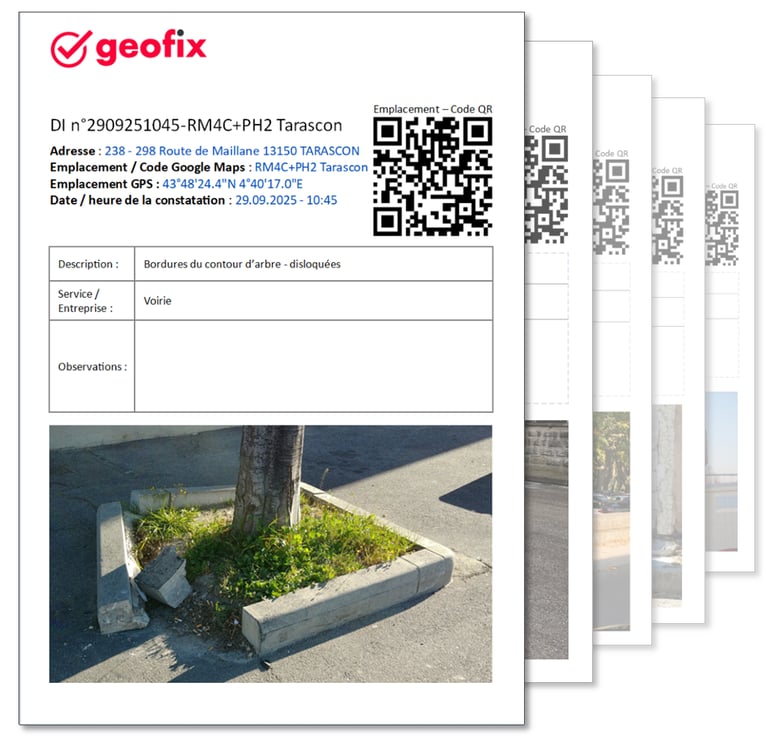 Geofix relève divers défauts constatés sur la voie publique et vous les transmet.